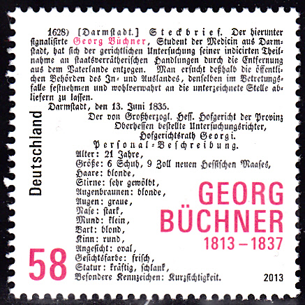 In der DDR erschien eine Marke (MiNr 954) in einer Serie "Berühmte deutsche Schriftsteller und Opernkomponisten" für Georg Büchner. Die Marke zeigt ihn und eine Szene aus seinem Werk "Woyzeck".