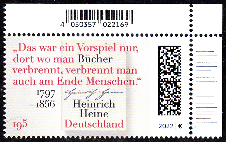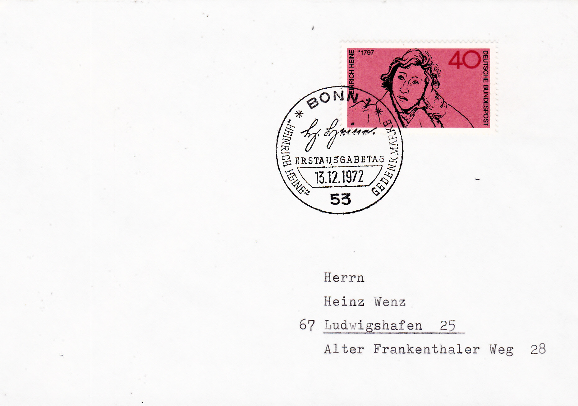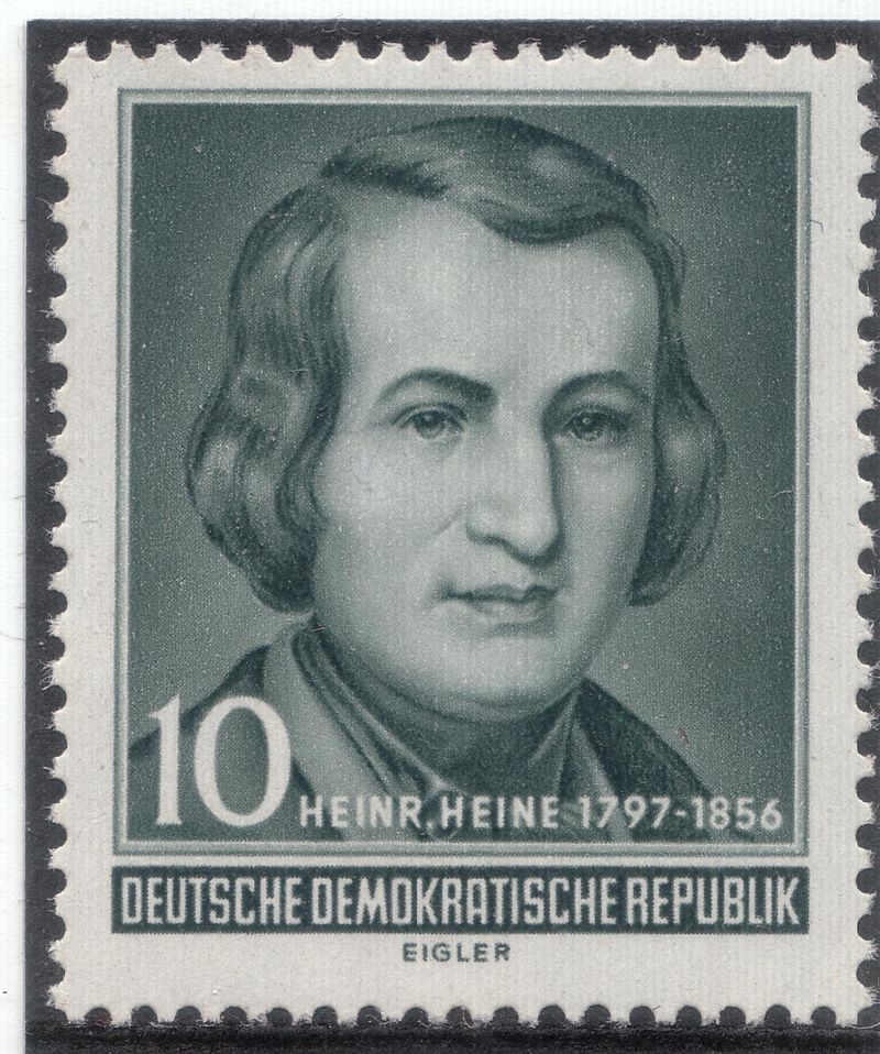 Zum 200. Geburtstag von Heinrich Heine erschien bei der Deutschen Post eine Marke (MiNr 1962) mit einem Porträt von ihm nach einer Zeichnung von Wilhelm Hensel (1794-1861).