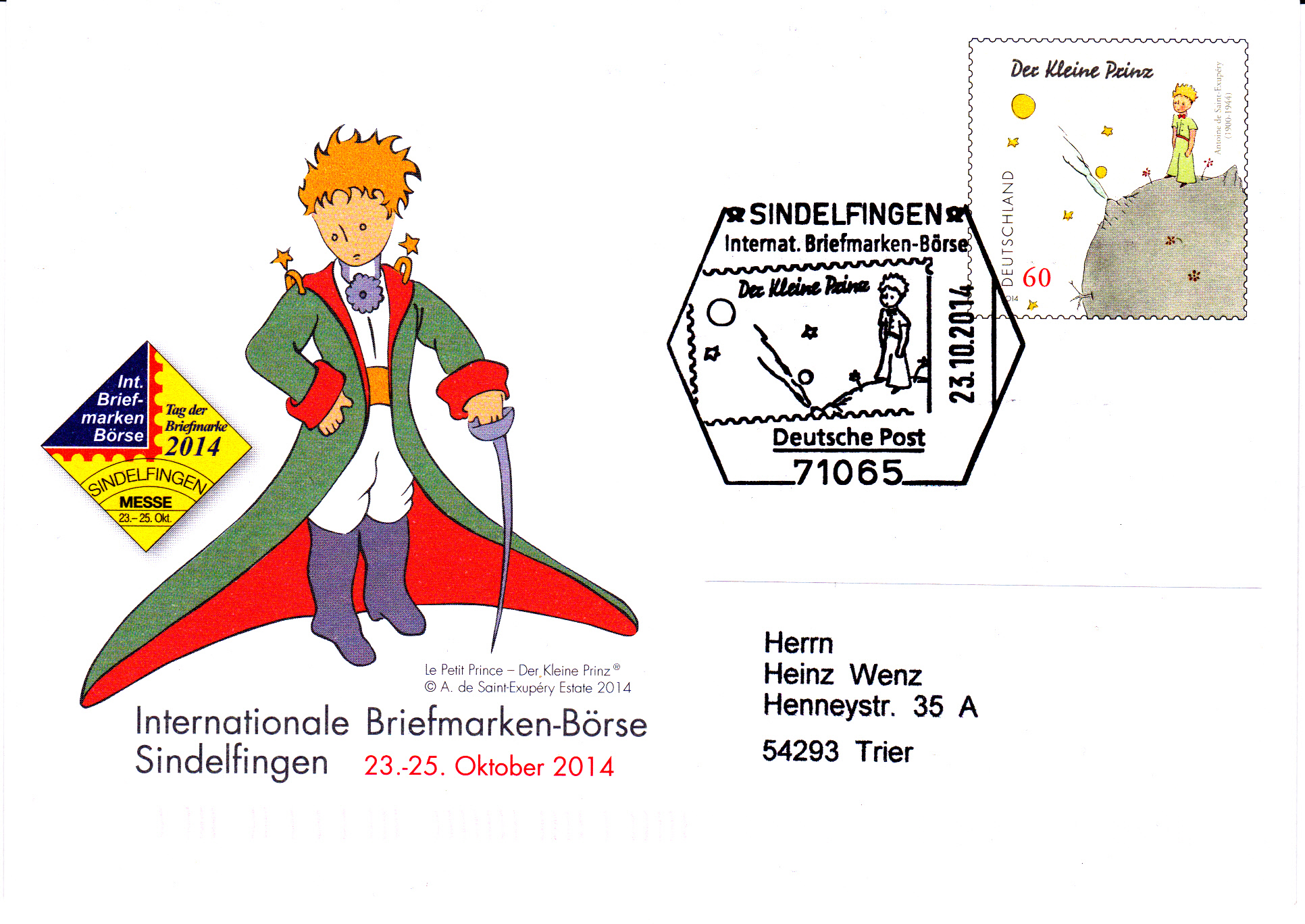 Hier ein Brief mit der linken unteren Ecke des Zehnerbogens der naßklebenden Ausgabe mit einem Schaf als Motiv auf dem Bogenrand gemäß dem Zitat aus der Geschichte "Zeichne mir ein Schaf":
