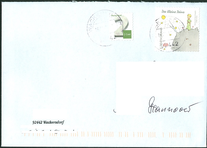 Die seit dem 01.01.2015 notwendige Zufrankierung ist selbstverständlich nicht nur mit einem Erganzungswert zu 2 Cents möglich, sondern auch mit einer Automatenmarke dieser Wertstufe.