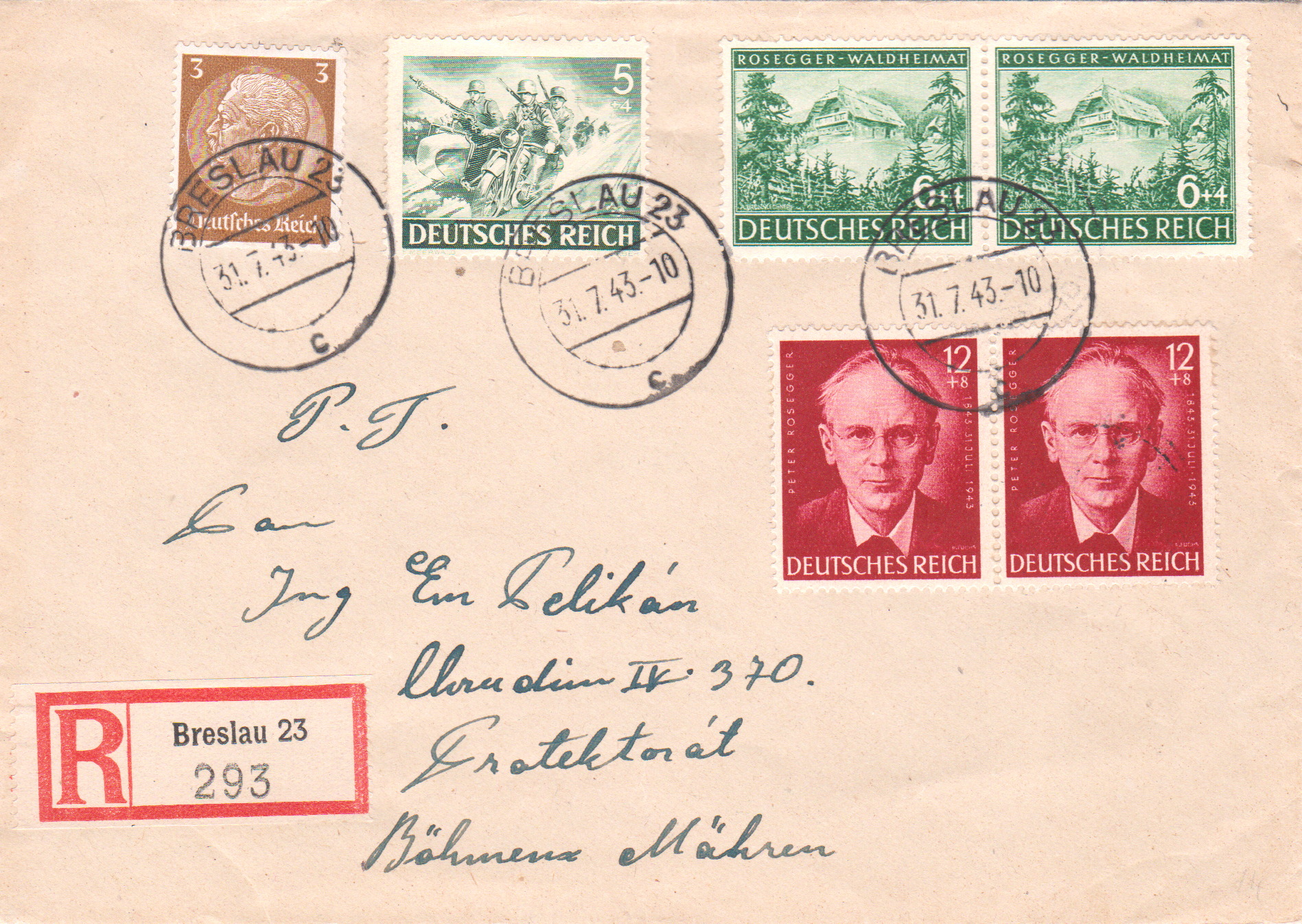 Sonderstempel vom 31.7.1943 aus Krieglach zum 100. Geburtstag von Peter Rosegger.
