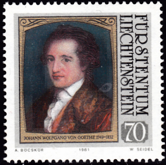 Aus Liechtenstein kommt diese Marke (MiNr 785) mit einem Porträt von Johann Wolfgang von Goethe nach einem Gemälde von Angelika Kauffmann (1741 - 1807; schweizerisch-österreichische Malerin).