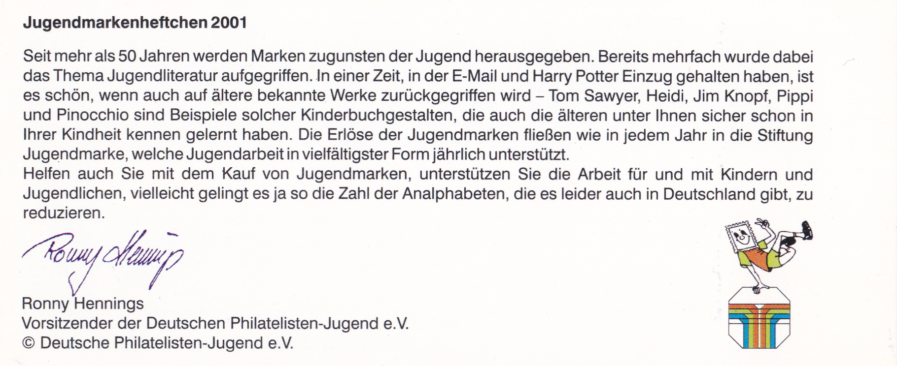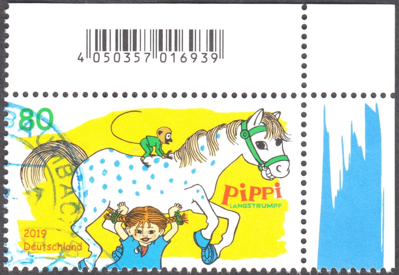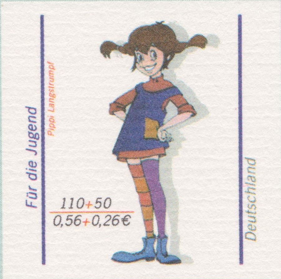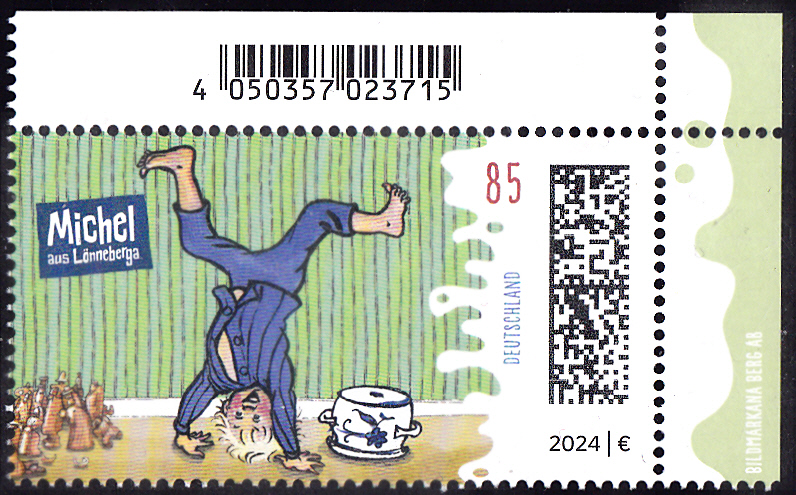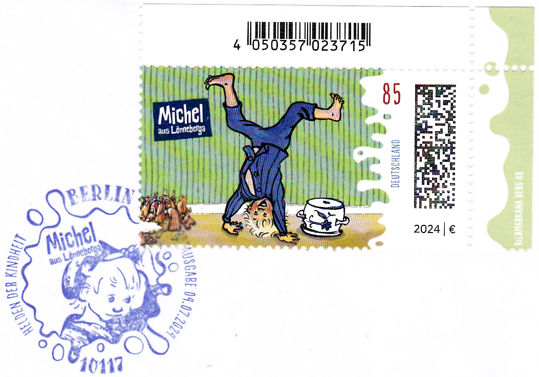 In der Serie "Helden der Kindheit" ist diese Marke (MiNr 3839) mit der Abbildung "Michel aus Lönneberga im Handstand mit Suppenschüssel und Holzmännchen" erschienen.