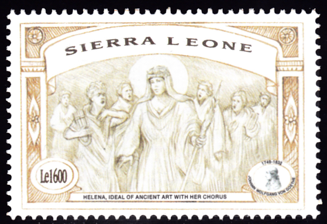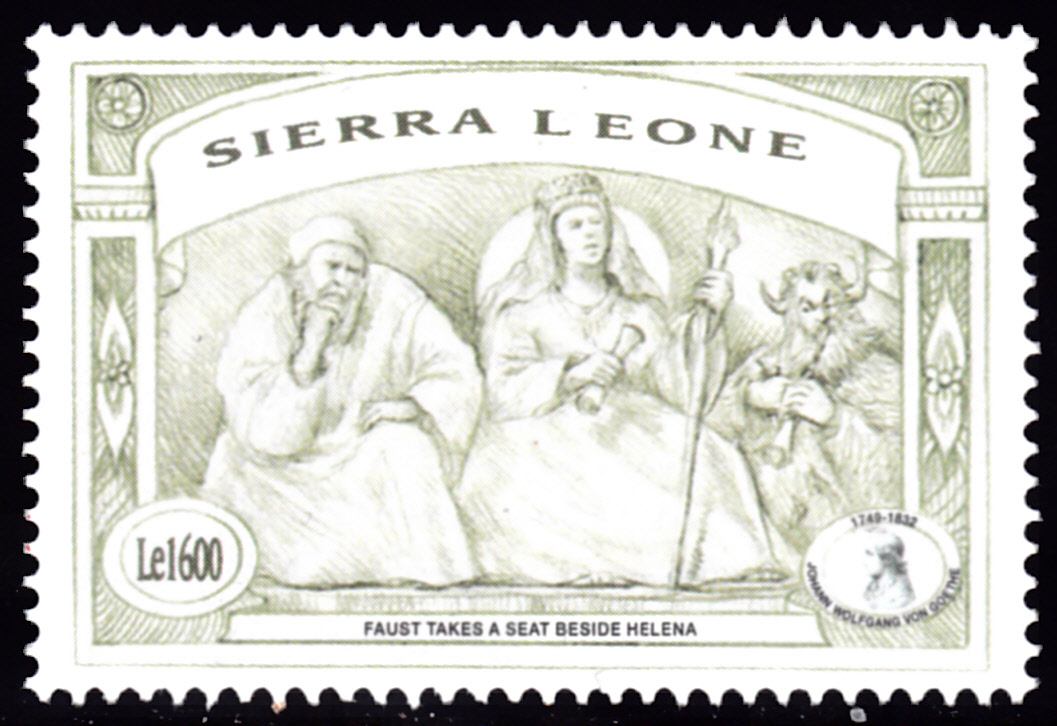 Und es gibt eine weitere Marke aus Sierra Leone (MiNr 3314) mit der Abbildung "Faust setzt sich neben Helena".