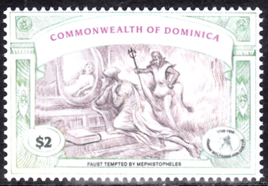 Auf der dritten Marken aus Dominica (MiNr 2717) gibt es eine Abbildung zu "Mephisto führt Faust in Versuchung".