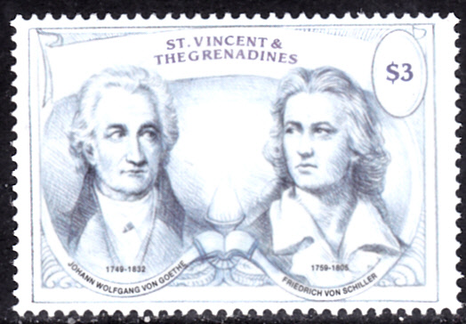 Auch in dieser Serie gibt es eine Marke (MiNr 3013) mit Johann Wolfgang von Goethe und Friedrich von Schiller im bekannter Muster.