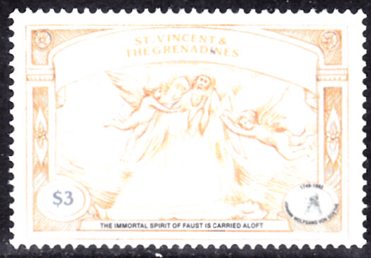 Auf dieser Marke aus St. Vincent (MiNr 4704) zeigt die Darstellung "Faust stirbt inmitten der Lemuren".