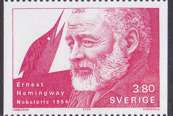In Schweden erschien 1990 diese Marke (MiNr 1640) mit einem Porträt von Ernest Hemingway.
