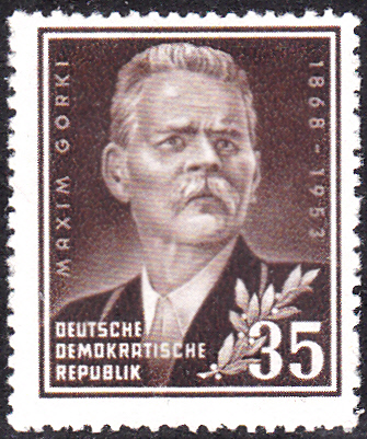 Zum 100. Geburtstag von Maksim Gorki erschien in der DDR diese Marke (MiNr 1351) mit einem Porträt von Maxim Gorkij und einer Ansicht seiner Geburtsstadt Nishnij Nowgorod (1932 bis 1990 Gorki).