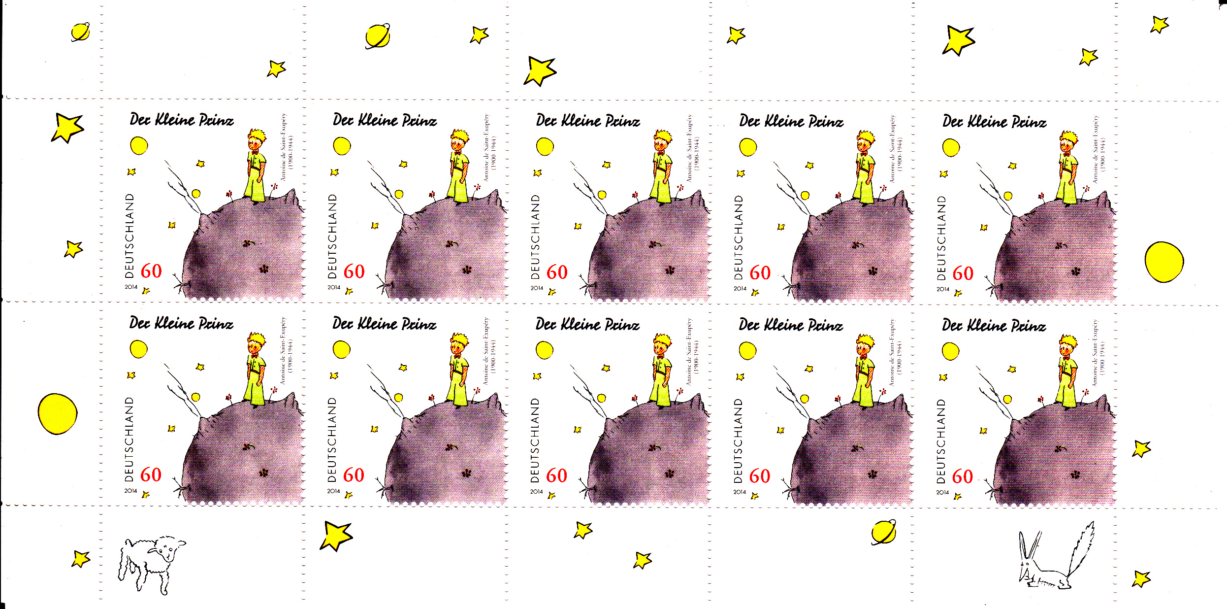 Zum 70. Geburtstag von Antoine de Saint-Exupéry gab die Deutsche Post AG am 1.September 2014 eine Sondermarke (MiNr 3102) mit dem Motiv "Der kleine Prinz auf seinem Asteroiden B.612" (Illustration zur Erzählung "Der kleine Prinz").
