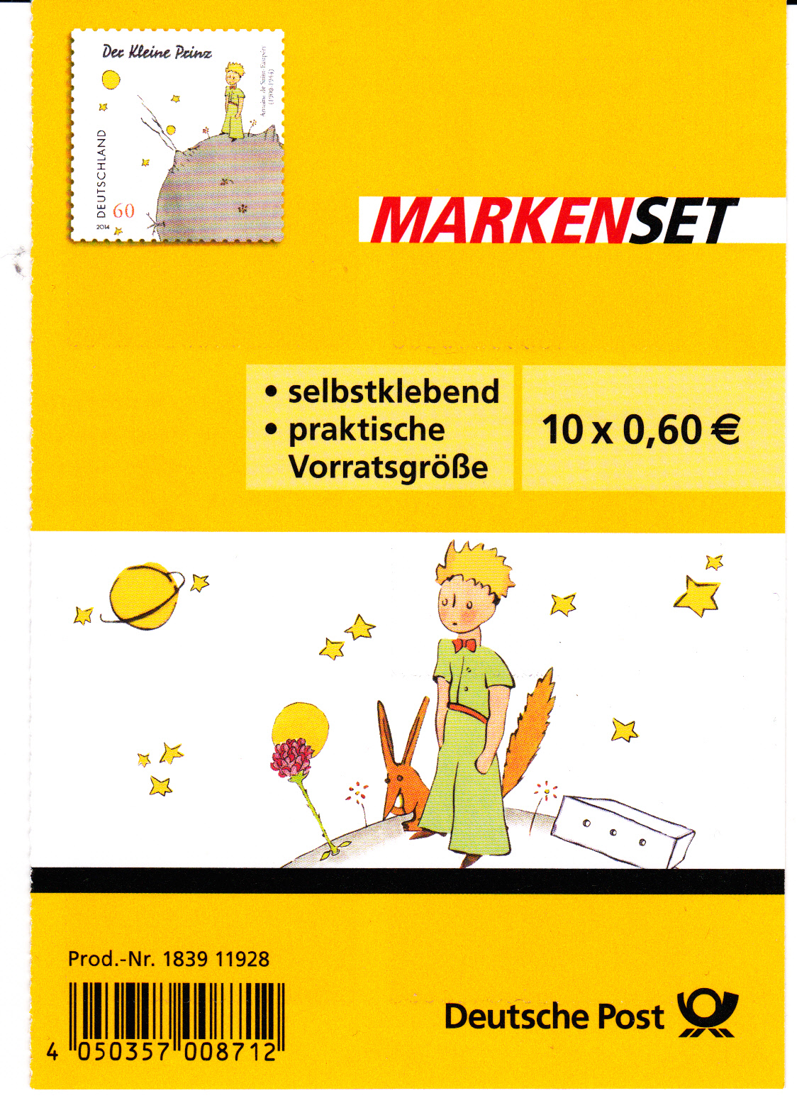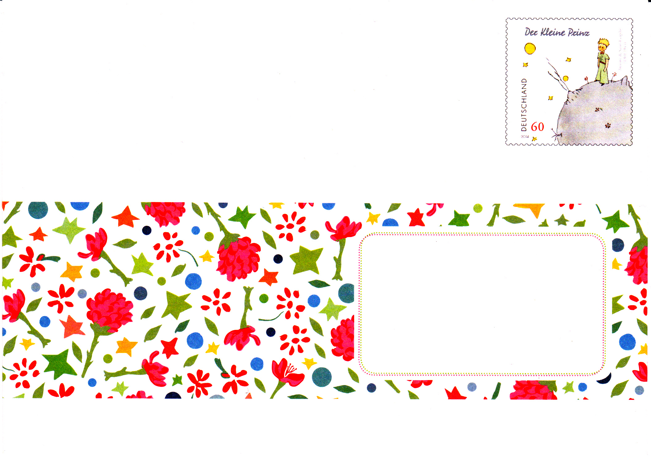 Die zweite Version des Plusbriefes mit dem Wertstempel "Der kleine Prinz" aus der Verkaufsverpackung sieht so aus: