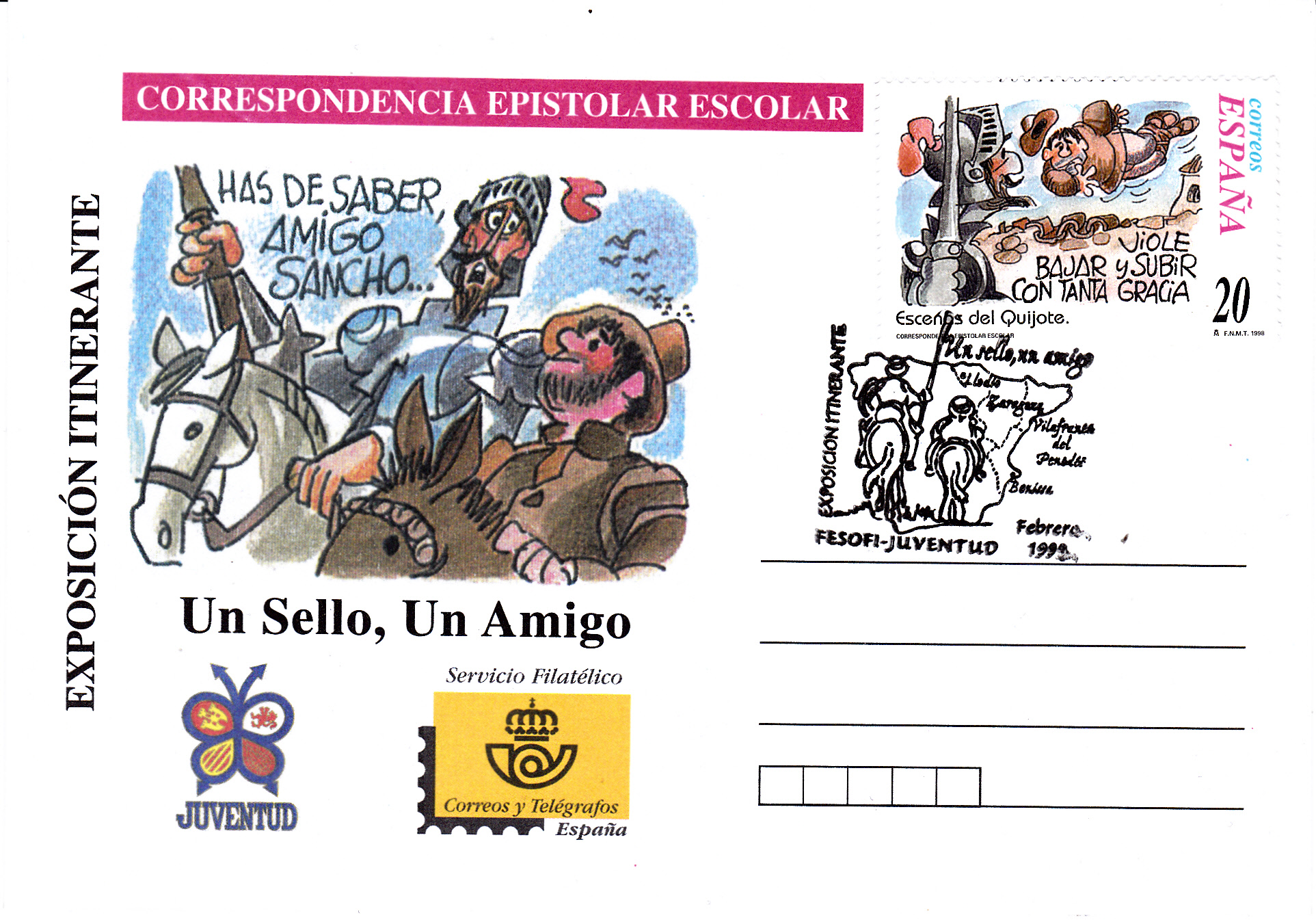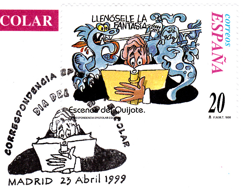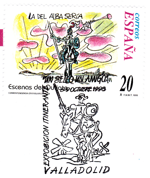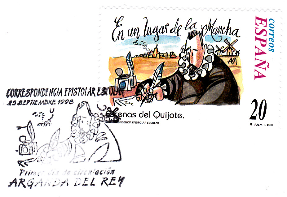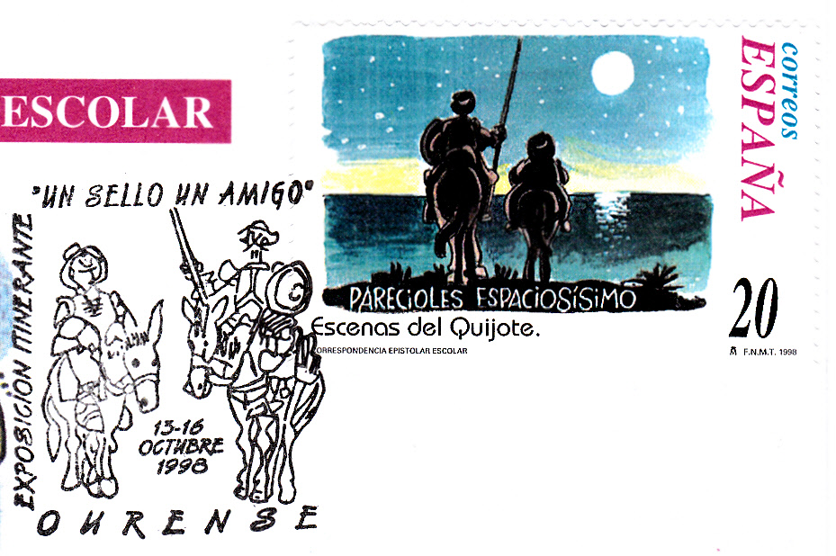 Am 25. Sept. 1998 erschienen in Spanien Freimarken in zwei Zusammendruckbogen für Schülerpost mit Illustrationen zum Roman "Don Quijote de la Mancha". Auf den Marken werden auch Textstellen zitiert.