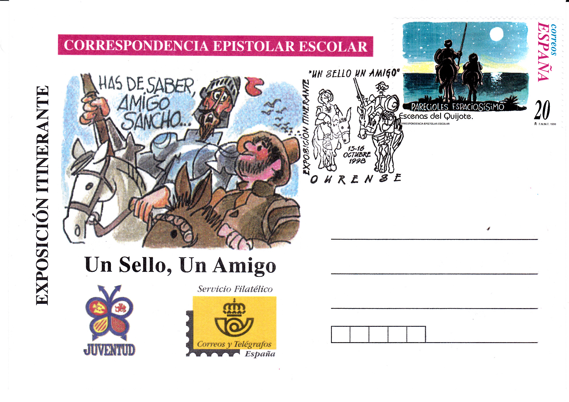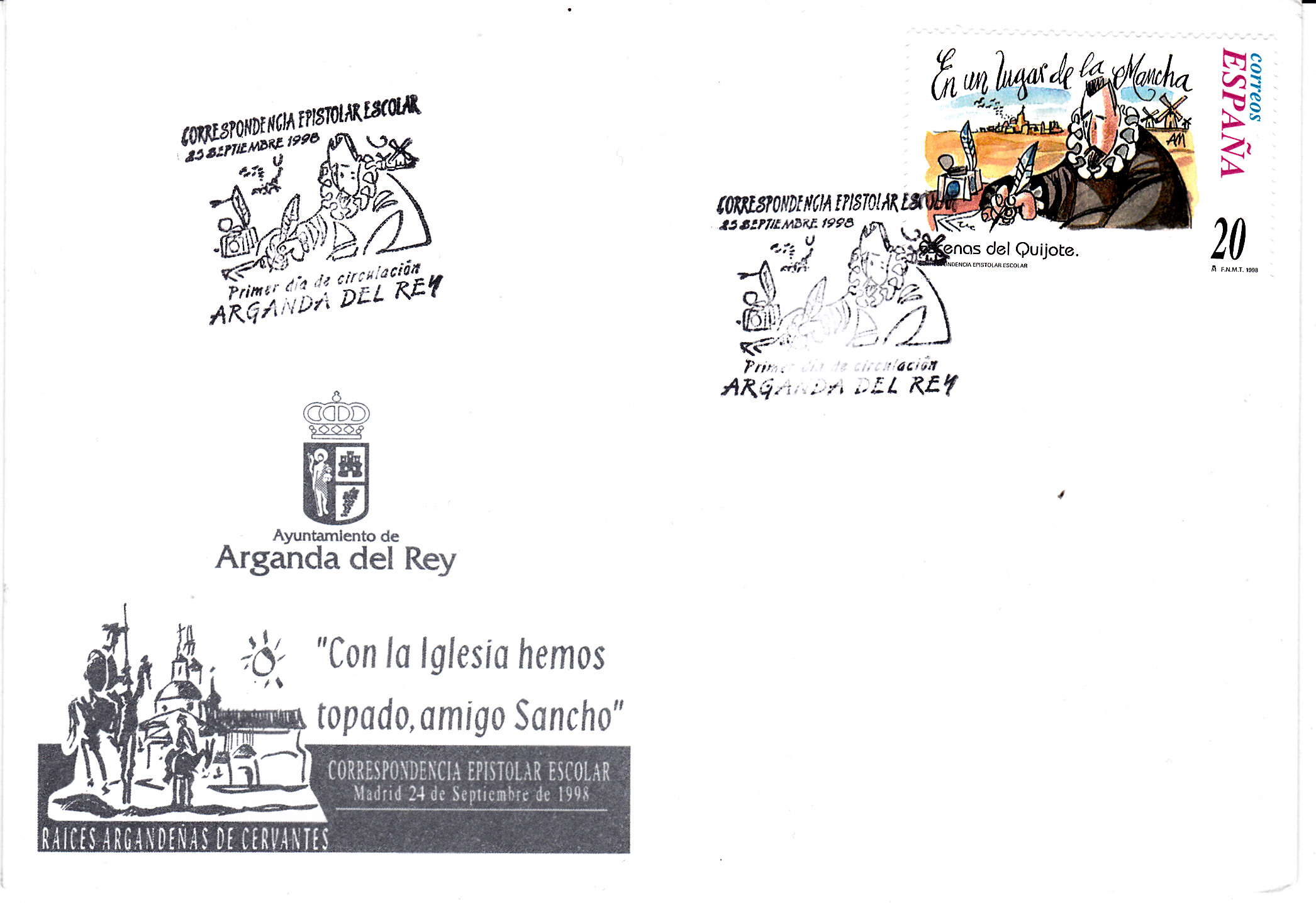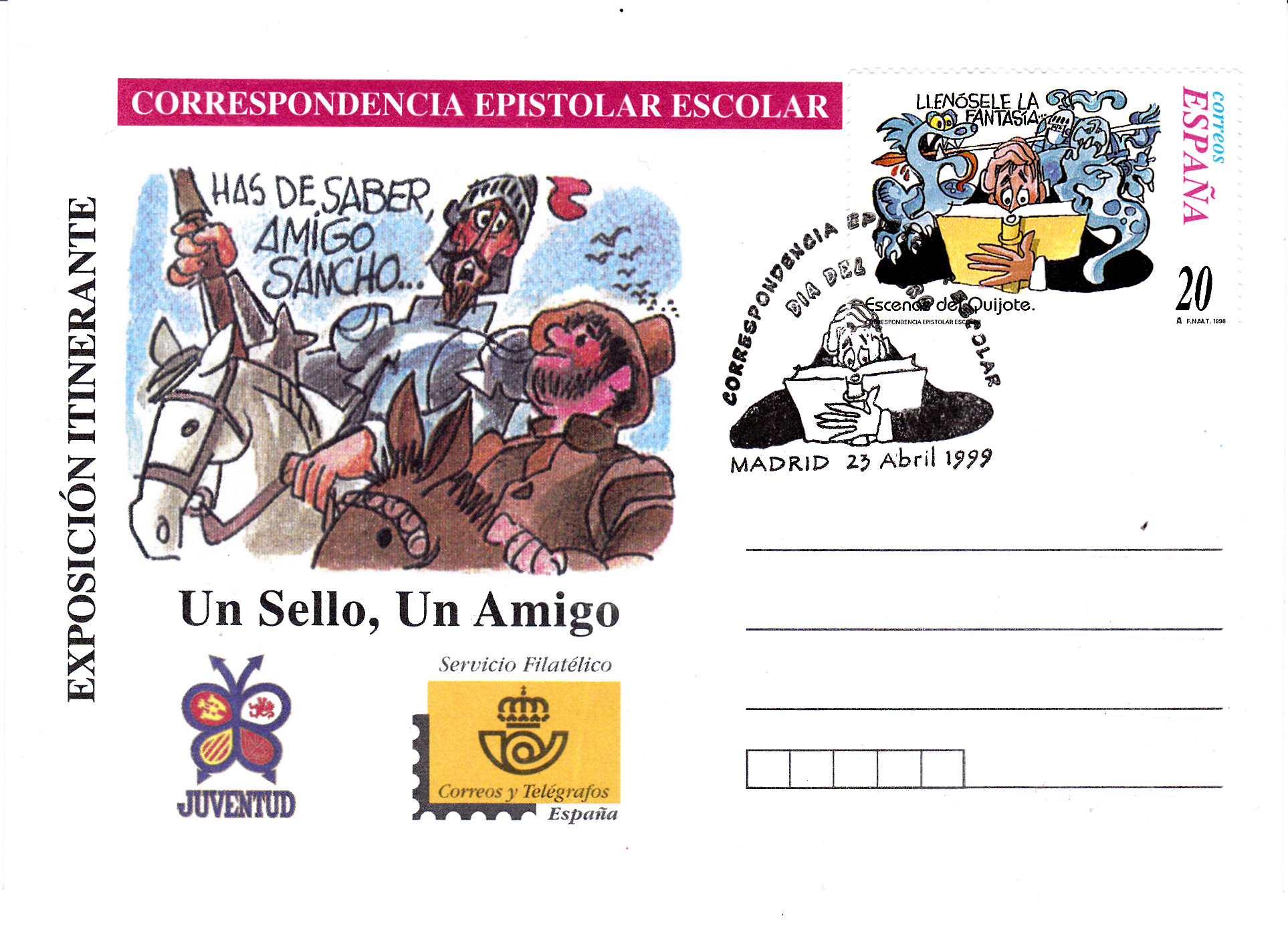 Am 25. Sept. 1998 erschienen in Spanien Freimarken in zwei Zusammendruckbogen für Schülerpost mit Illustrationen zum Roman "Don Quijote de la Mancha". Auf den Marken werden auch Textstellen zitiert.