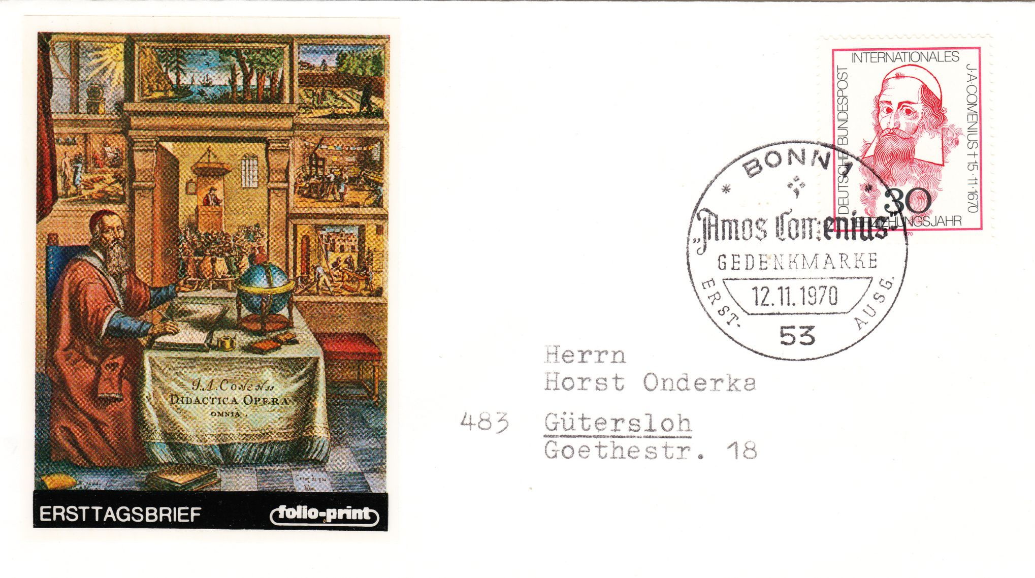 Zum 300. Jahrestag der Herausgabe seiner didaktischen Schriften "Opera didactica omnia" erschien in der DDR diese Sondermarke, MiNr. 643: