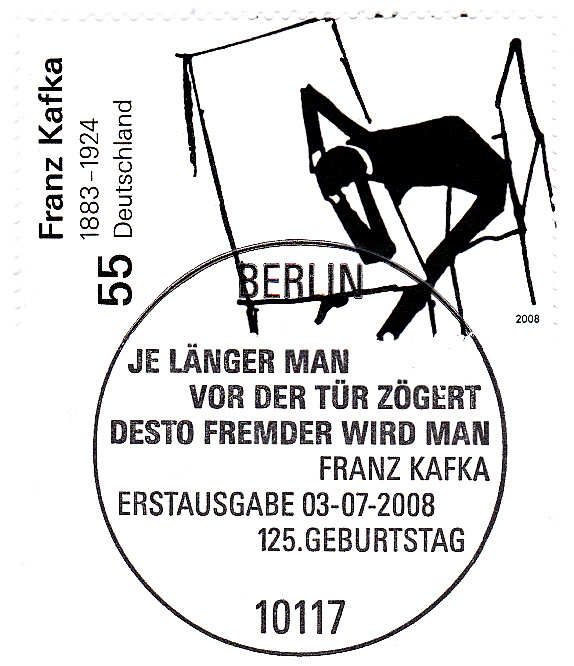 Im Ersttagsonderstempel aus Berlin zu dieser Ausgabe wird ein Satz von Franz Kafka zitiert.