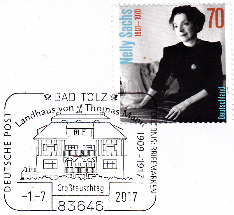 Sonderstempel aus Bad Tölz vom 1.7.2017 mit der Abbildung dieses Landhauses von Thomas Mann.