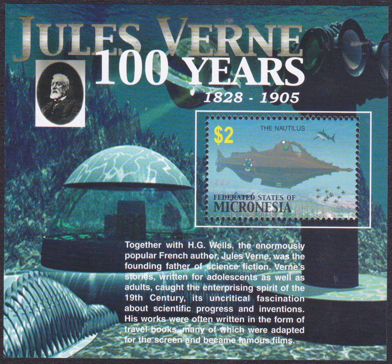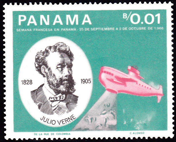 In Panama ist in einer Serie diese Marke (MiNr 944) mit einem Porträt von Jules Verne und einer Abbildung des futuristischen U-Bootes Nautilus aus dem Roman "20.000 Meilen unter dem Meer".