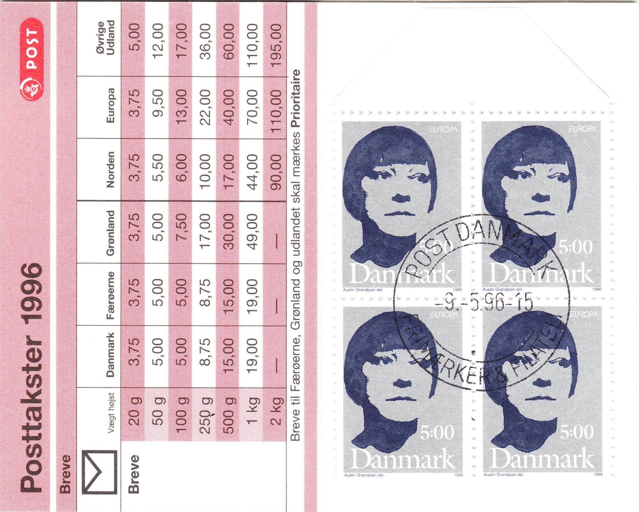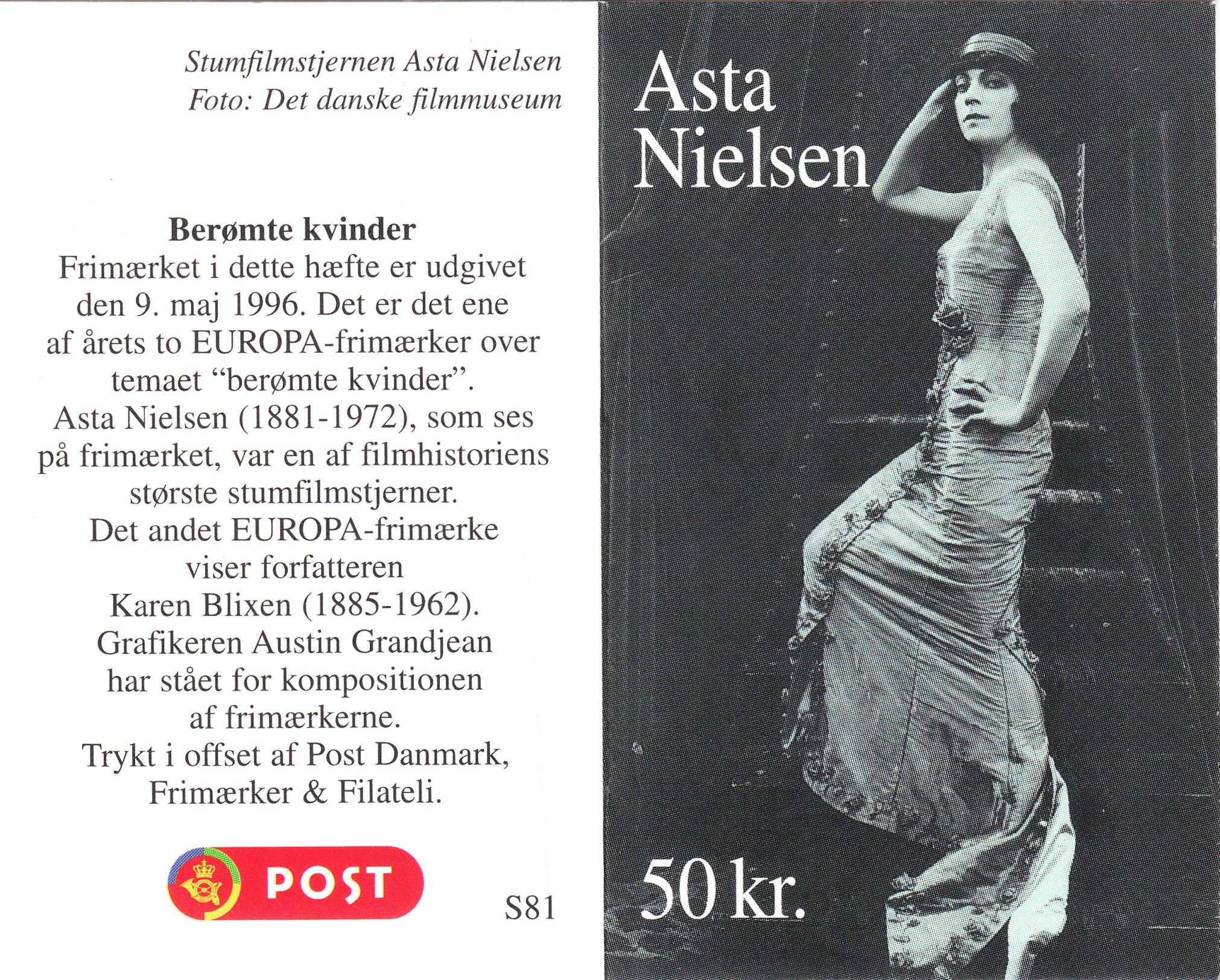 Die dänische Post ehrte sie 1996 mit dieser Europamarke, hier die Ausgabe als Markenheftchen: