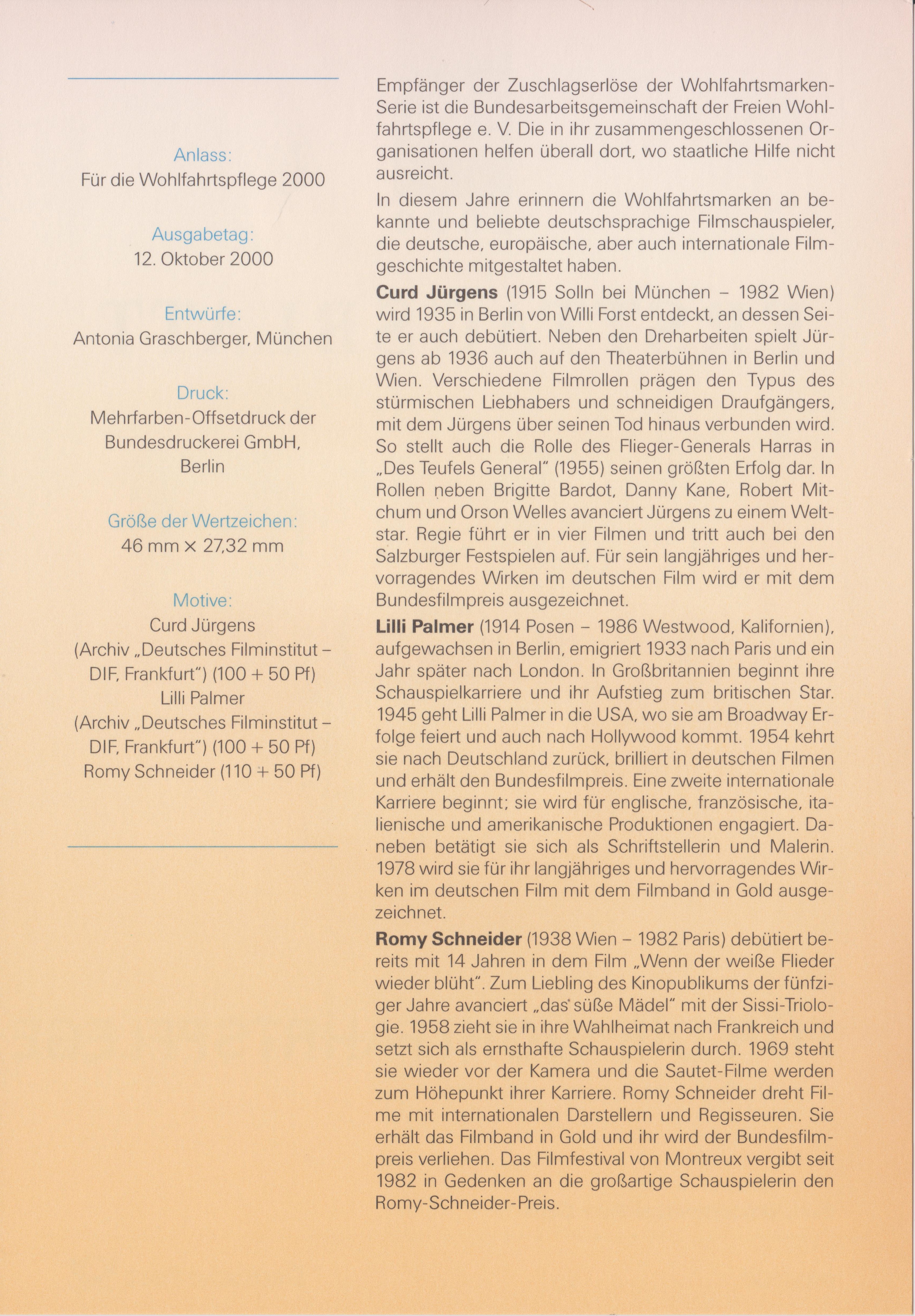 In der Wohlfahrtsmarkenserie 2000 ist auch eine Marke (MiNr 2143) mit einem Porträt von Lilli Palmer erschienen.