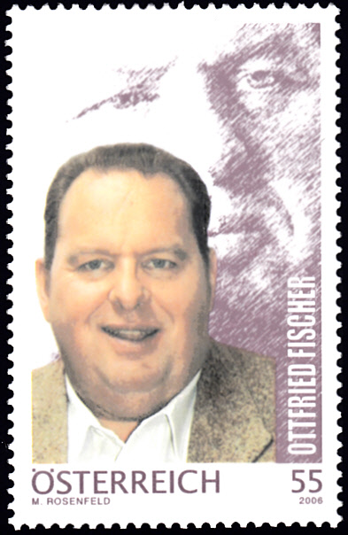 Eine Marke aus Österreich (MiNr 2604) zeigt ein Porträt von Ottfried Fischer.