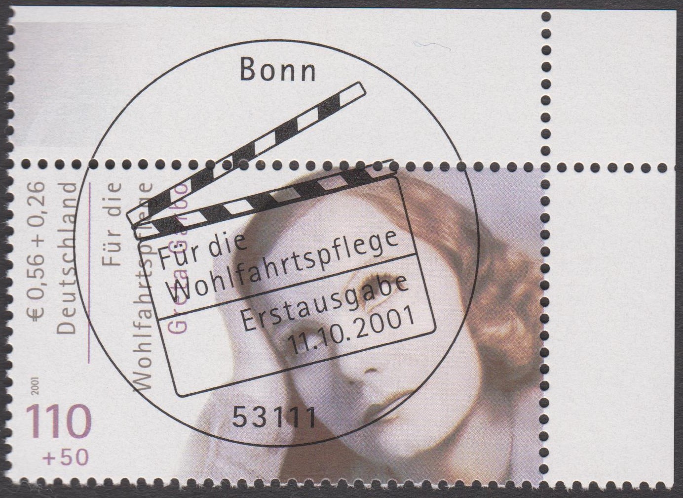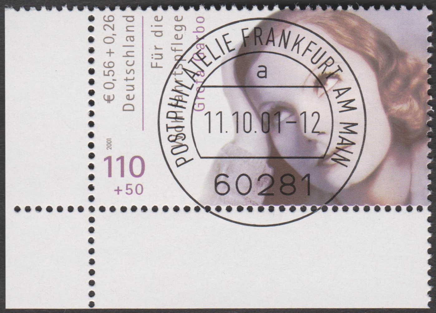 Die Kleinbögen wurden gezähnt K 14 und erschienen am 11.10.2001, hier ein Eckrandstück oben rechts der Bund MiNr. 2221 A:
