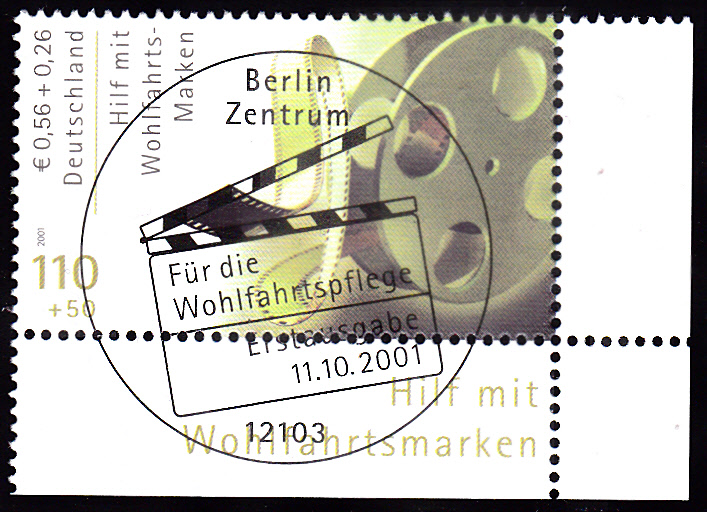 Die Kleinbögen wurden gezähnt K 14 und erschienen am 11.10.2001, hier ein Eckrandstück oben rechts der Bund MiNr. 2220 A: