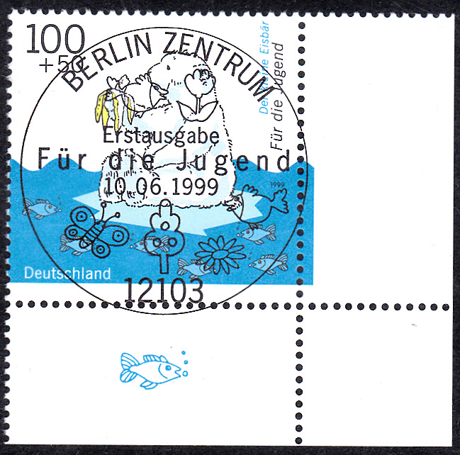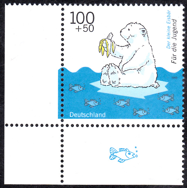 Eine der Jugendmarken des Jahres 1999 (MiNr 2055) zeigt ein Bild vom kleinen Eisbär Lars.