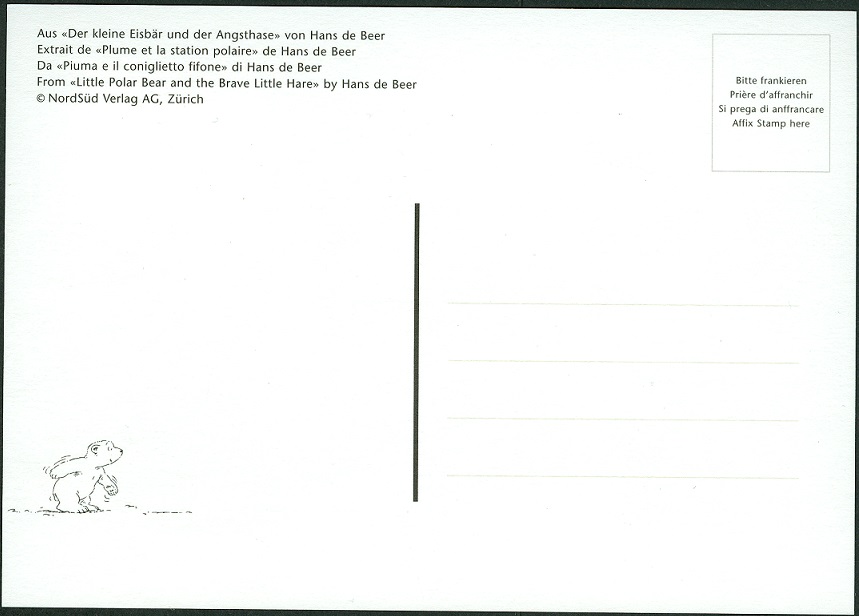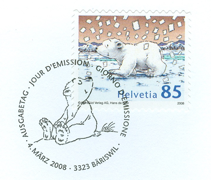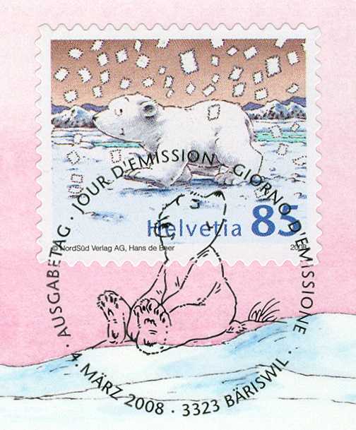 Am 4. März 2008 brachte die Schweizer Post eine Einzelmarke zu 85 Rappen an die Postschalter. Das Motiv ist Der kleine Eisbär. Die Schneeflocken haben natürlich die Form von weißen und unbedruckten Briefmarken.