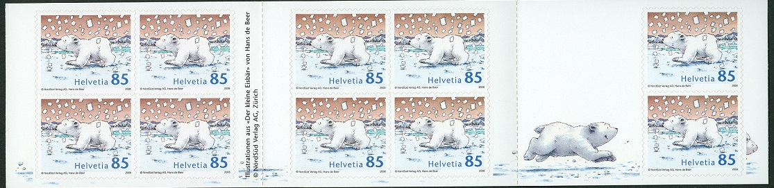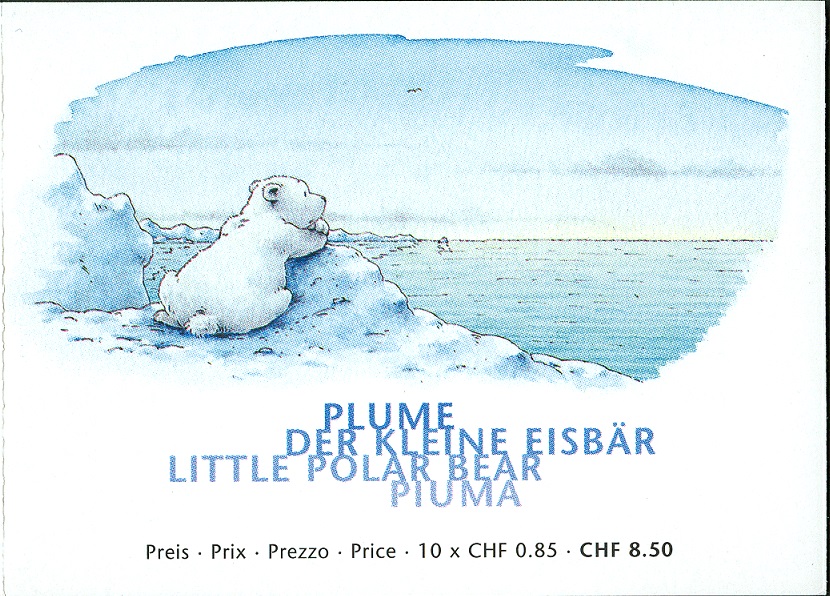 Zur Einzelmarke auf Trägerfolie erschien das Motiv mit 10 marken als Markenheftchen. Die Motivgestaltung des Markenheftchens ist für die Freunde des kleinen Eisbären sehr ansehenswert.