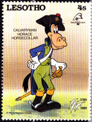 Zur Internationalen Briefmarkenausstellung PHILEXFRANCE ’89 in Paris anläßlich dem 200. Jahrestag der Französischen Revolution erschien in Lesotho eine Markenserie mit Walt-Disney-Figuren in Uniformen dieser Zeit.
