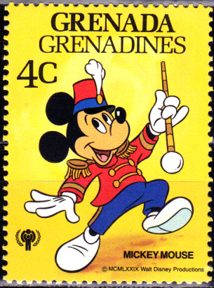 In Grenada/Grenadinen ist im Dezember 1979 eine Serie zum Internationalen Jahr des Kindes mit Walt Disneyfiguren erschienen. Diese Marke (MiNr 358) zeigt Mickey Mouse als Admiral.