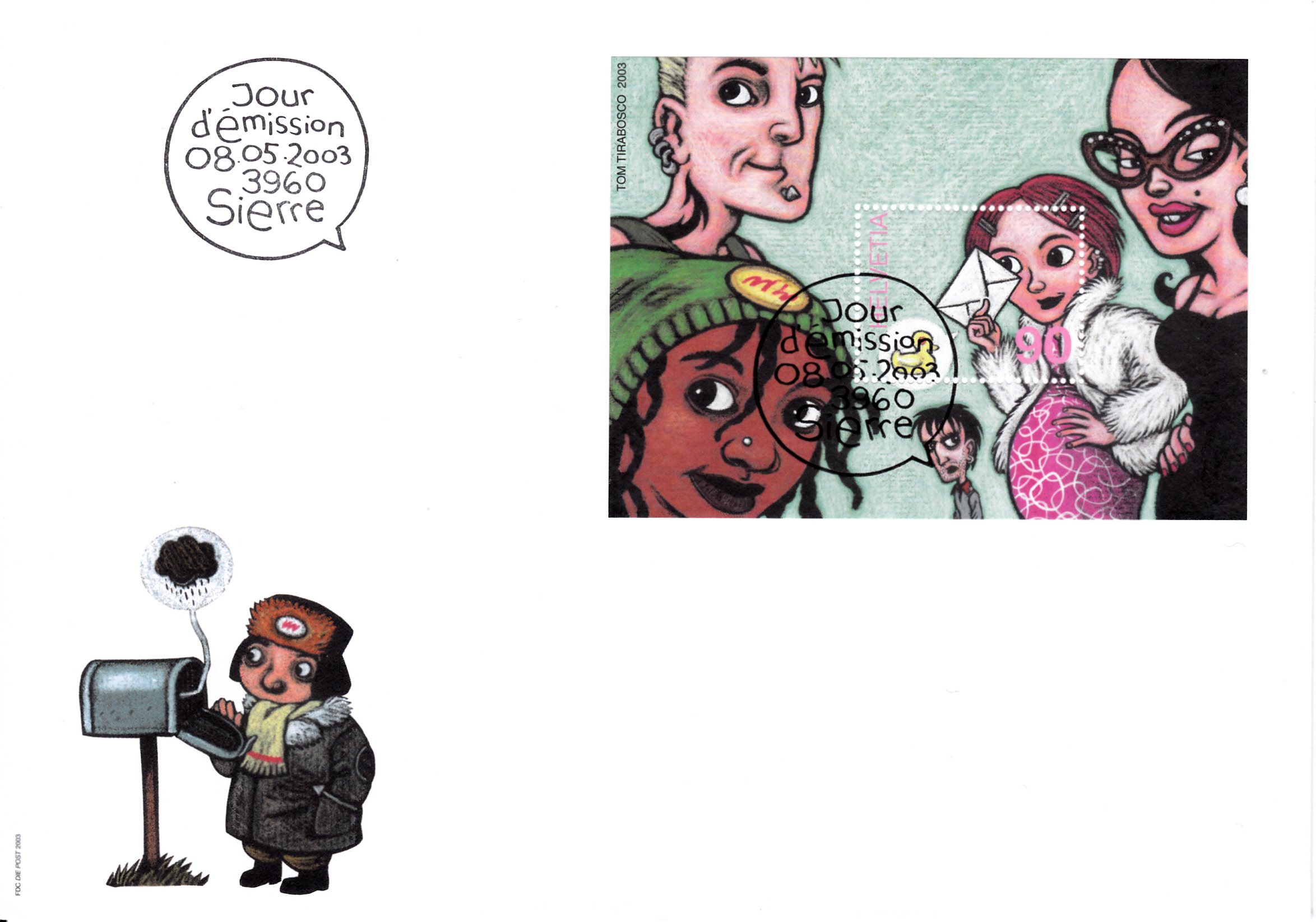 Zu dieser Ausgabe gehört auch noch eine Blockausgabe (MiNr Block 34 mit Marke MiNr 1843). Der Block zeigt die Comiczeichnung "Heidi kündet ihren Freunden das baldige freudige Ereignis an".