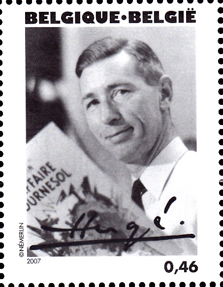 Zum 100. Geburtstag von Hergé ist in einer Serie in Belgien diese Marke (MiNr 3696) mit einem Porträt von Hergé, eigentlich Georges Rémi (1907-1983, Comicautor) erschienen.
