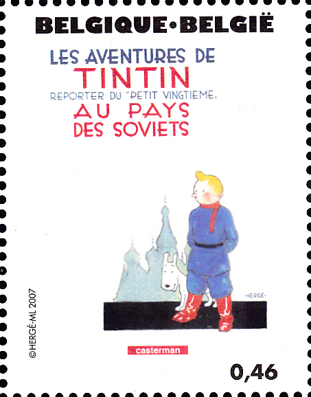 Hier zeige ich die Marke (MiNr 3684) mit dem Titelbild des "Tim-und-Struppi-Albums "Im Lande der Sowjets" (1929) in Französisch.