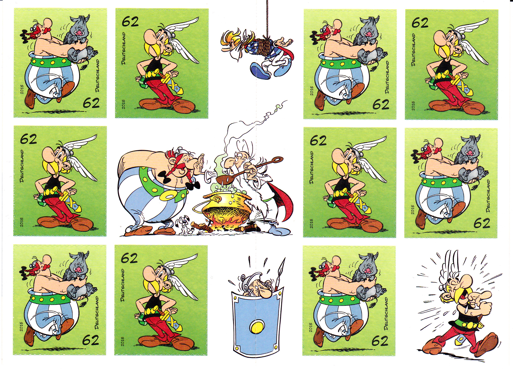Die Marke zu 62 Cent mit der Abbildung Obelix gibt es auch als selbstklebende Ausgabe (MiNr 3178).