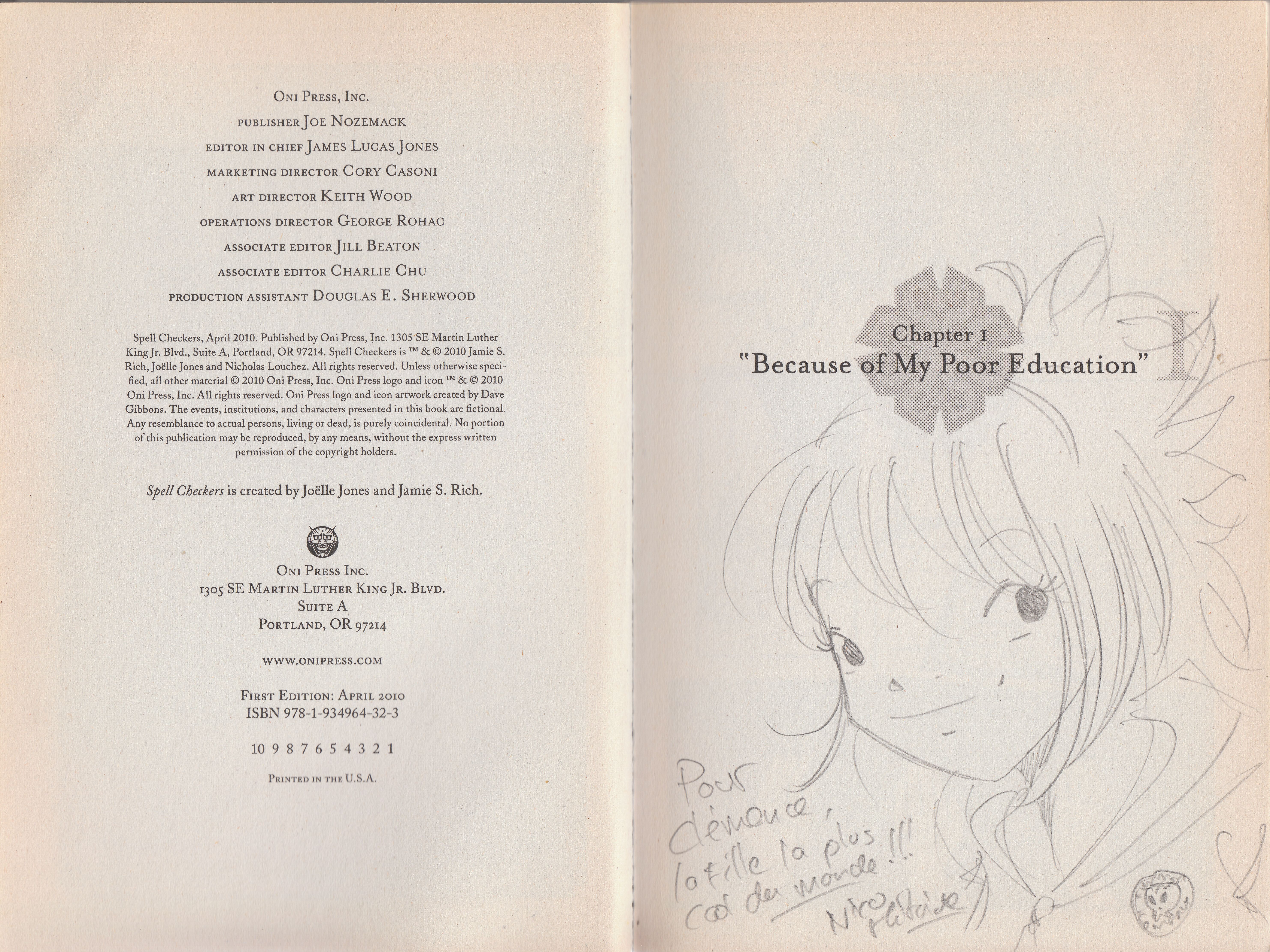 Im April 2010 erschien bei ONI PRESS in den USA die Graphic Novel SPELL CHECKERS VOLUME 1, gezeichnet von Joëlle Jones und Nicolas Hitori De:
