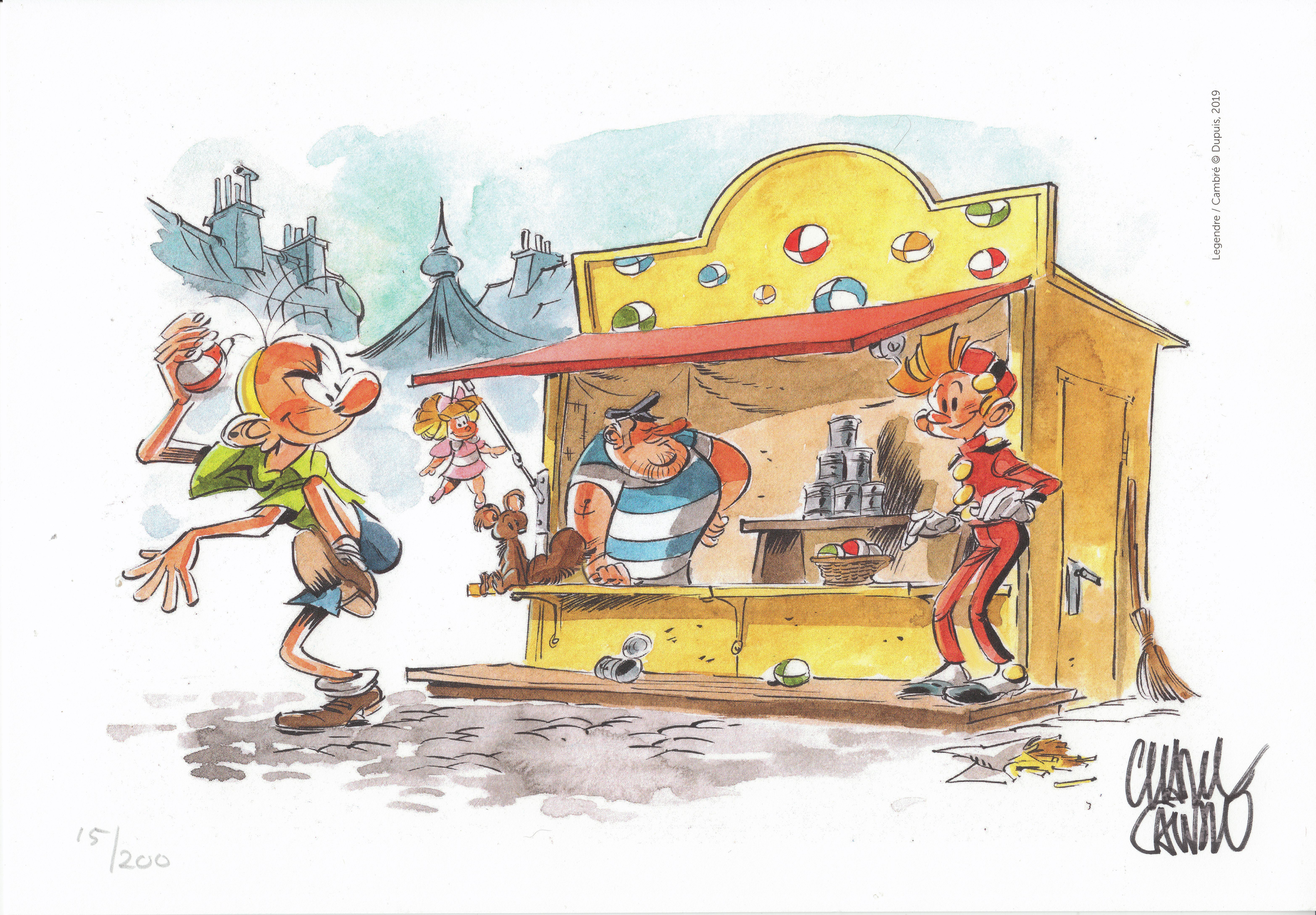 Hier ein vom belgischen Comiczeichner Charel Cambré signierter, auf 200 Exemplare limitierter Druck zur Comicserie Spirou und Fantasio: