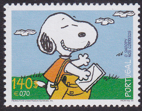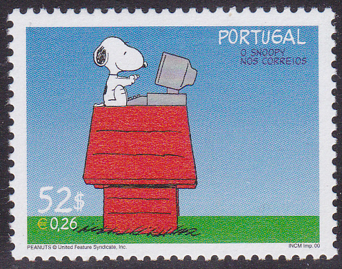 In Portugal ist zu "50 Jahre Comicserie Peanuts" auch eine Markenserie zum Thema "Snoopy und die Post" erschienen. Auf dieser Marke (MiNr 2461) schreibt Snoopy einen Brief am Computer.