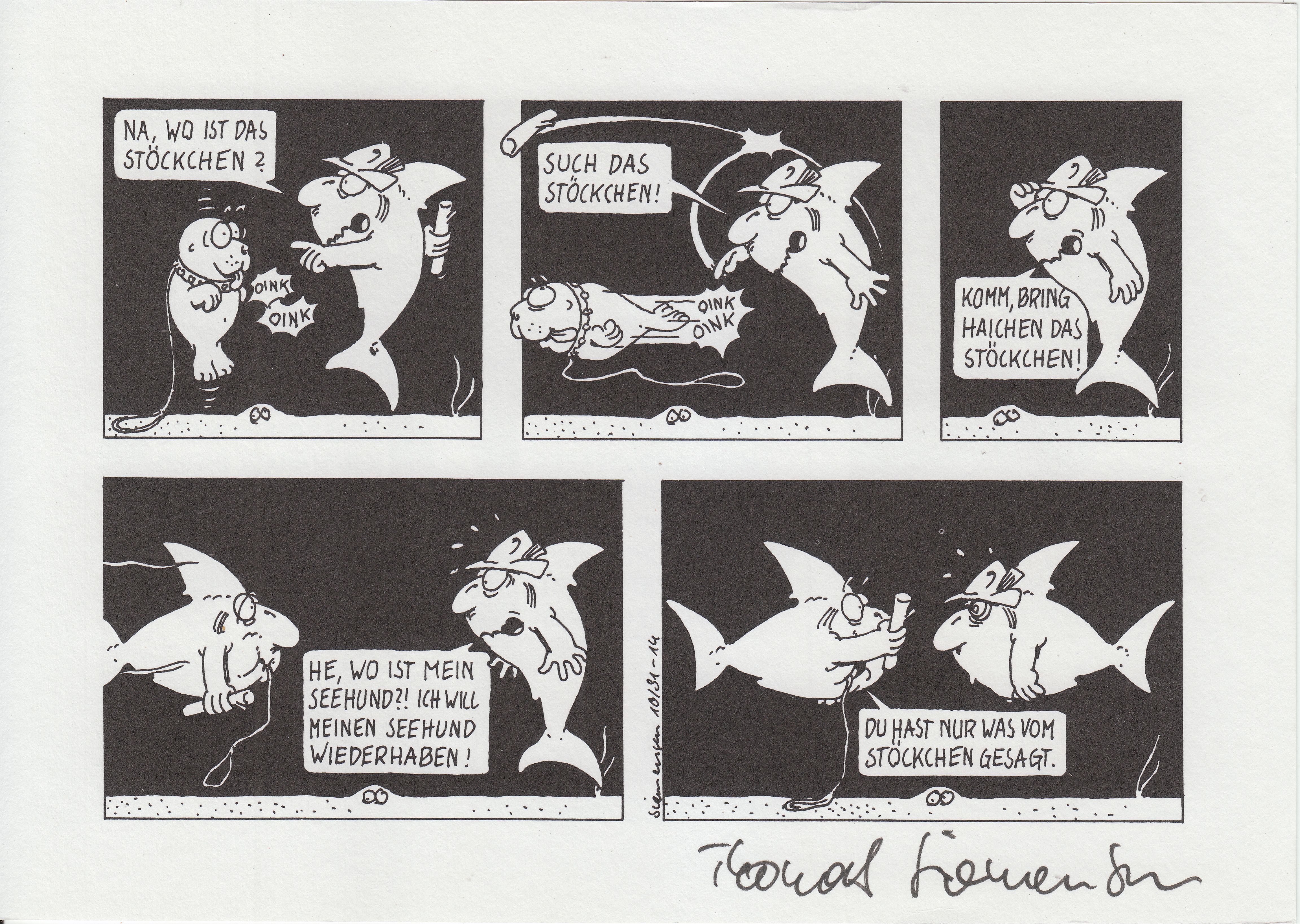 Und da derselbe Anbieter auch diese Karte mit Signatur von Peter Gaymann im Angebot hatte habe ich dieses Exemplar als Beifang gerne mitgenommen:
