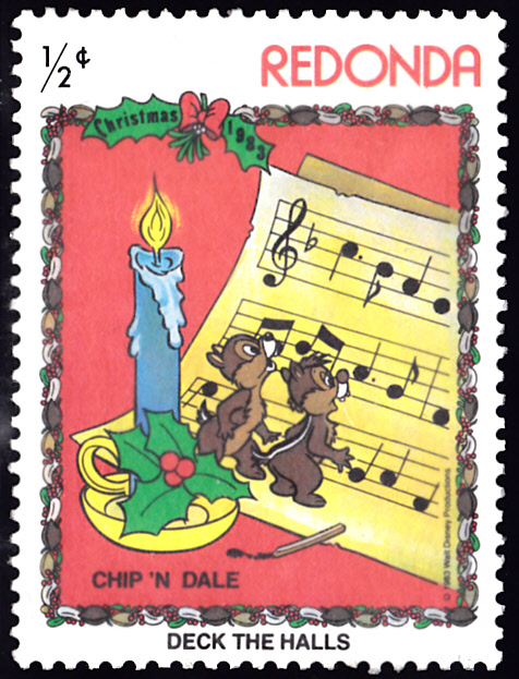 Auf Redonda (Redonda liegt etwa 55 km westlich von Antigua und gehört zu Antigua und Barbuda) ist zu Weihnachten 1983 eine Serie mit Darstellungen zum englischen Weihnachtslied "Deck the Halls" durch Walt-Disney-Figuren.