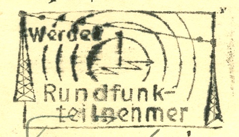Mit einem Einsatz in einem Maschinenstempelgerät wirbt das Görlitzer Postamt 1933 um Rundfunkteilnehmer.