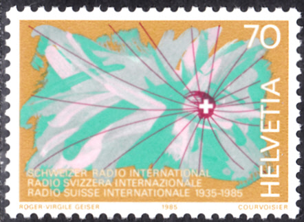 Zum Jubiläum "50 Jahre Radio Schweiz International" ist in der Schweiz eine Marke (MiNr 1302) mit einer symbolischen Darstellung erschienen.