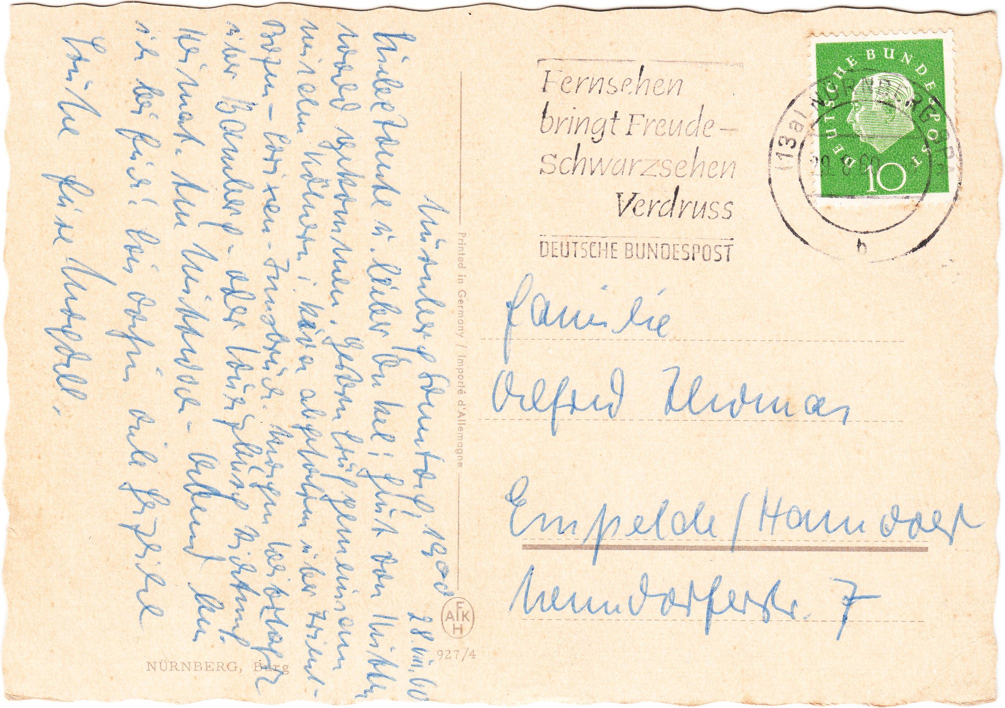 In dem Werbeeinsatz des Maschinenstempelgerätes ist neben dem Stahlkonstrukt ein "Fernsehbild/Testbild" dargestellt.