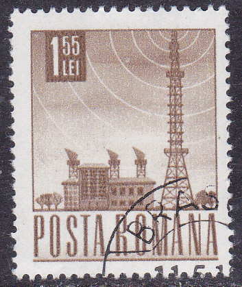 Eine Marke aus Rumänien (MiNr 2649) aus der Freimarkenserie "Post- und Verkehrswesen" zeigt eine Funk- und Fernsehstation.