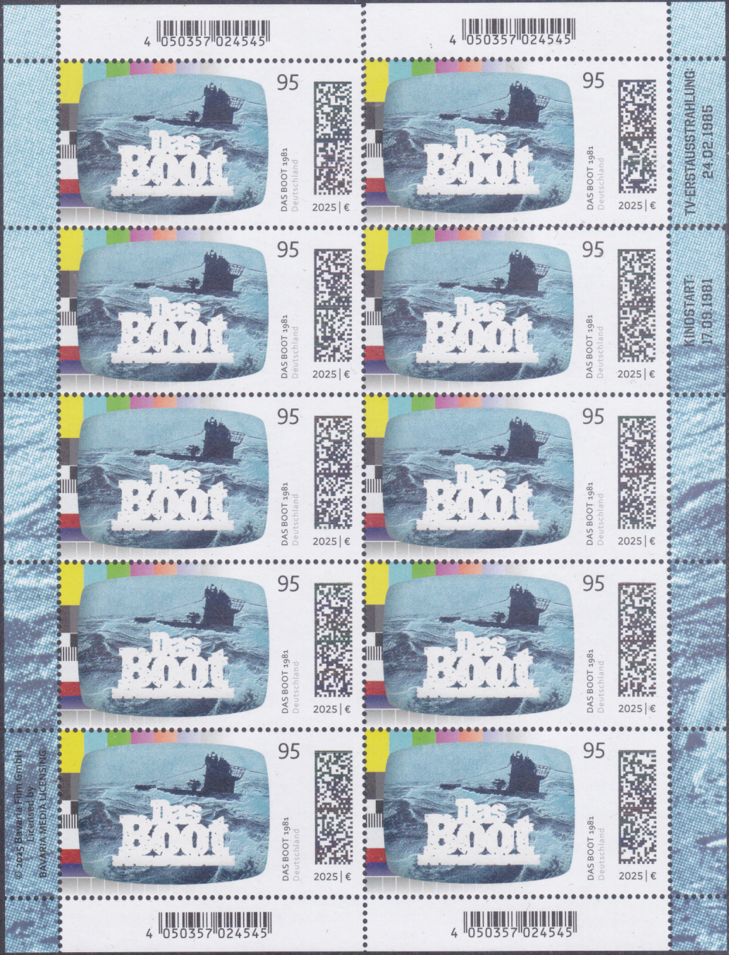 Bei der Deutschen Post ist eine Marke (MiNr 3924) in der Serie "Deutsche Fernsehlegenden" mit einem Fernsehbild mit einem Ausschnitt aus dem Filmplakat zu "Das Boot" von 1981.