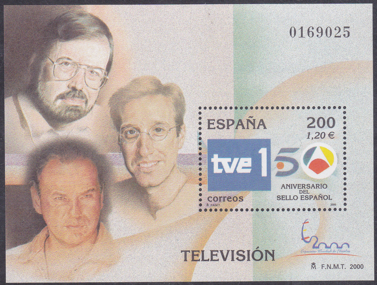 Zur Internationalen Briefmarkenausstellung ESPAÑA 2000 in Madrid erschien in Spanien ein Block (MiNr Block 94 mit Marke MiNr 3597) zum Thema Fernsehen. Die Marke des Blockes zeigt das Sendeemblem von TVE 1.