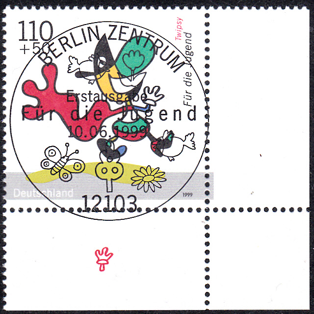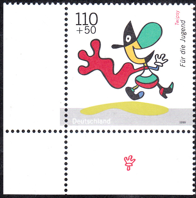 Eine der Jugendmarken des Jahres 1999 (MiNr 2058) zeigt ein Bild mit Twipsy.