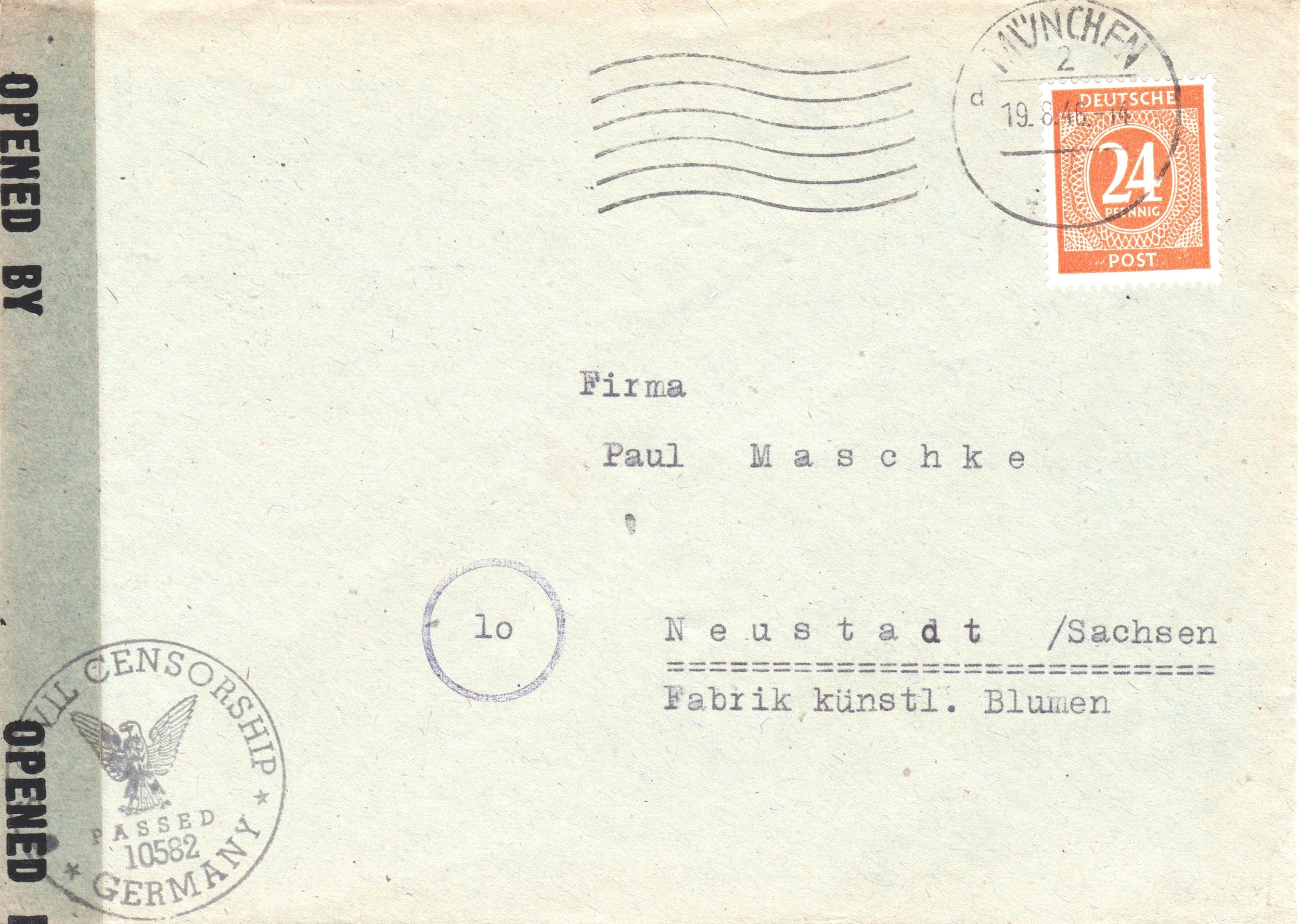 Foren-Übersicht Fragen und Diskussion Postgeschichte Zensurpost Zensurpost nach dem Zweiten Weltkrieg Deutschland - Alliierte Besetzung Amerikanische Zone Zensurstelle München Prüferstempel amerikanischer Wappenadler