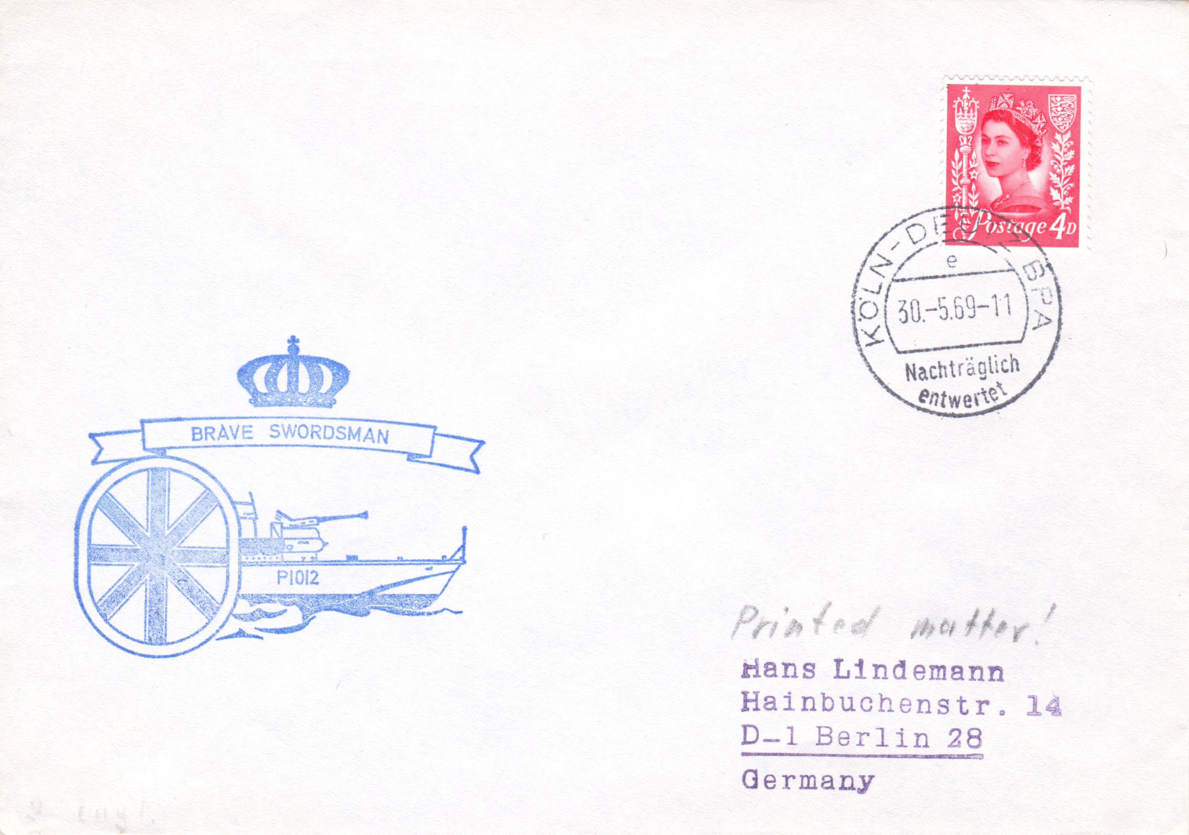 Die Entwertung des britischen Postwertzeichens erfolgte daher korrekt mit dem Tagesstempel "KÖLN-DEUTZ BPA e 30.-5.69-11 Nachträglich entwertet".