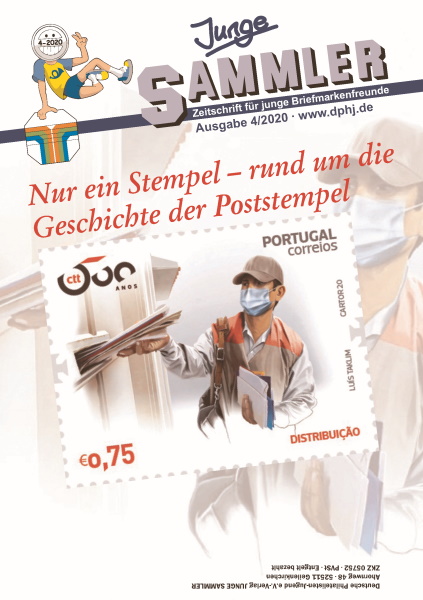 Mit einem portugiesischen Briefträger auf der Titelseite - zeitgerecht mit Corona-Mundschutz - kommt der Junge Sammler direkt zu allen Mitgliedern der Deutschen Philatelisten-Jugend ins Haus. Als online-Ausgabe kommt er sogar schon einige Tage früher zu seinen Lesern. In einer Zeit, wo wenige Gruppentreffen stattfinden können, stellt er die Verbindung zur Philatelie und den jugendlichen Mitgliedern her. Mit vielen Links und weiteren Informationen im Internet bietet der Junge Sammler viele Möglichkeiten, sich intensiver mit den Beiträgen oder Themen von Briefmarken auseinanderzusetzen. Das Junge Sammler-Quiz ist wieder ein Angebot aktiv zu werden. Das gilt auch für die kommenden Veranstaltungen, zu denen noch Anmeldemöglichkeiten bestehen. So gibt es eine neue Online-Ausstellung aber auch weitere Anmeldemöglichkeiten bis hin zum nächsten Stiftungswettbewerb und der nächsten Deutschen Mannschaftsmeisterschaft in Vlotho.